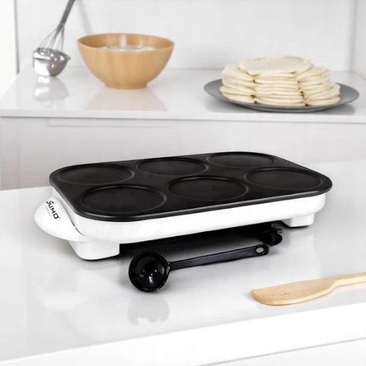 صانعة البان كيك من Sumo هي جهازك المثالي في المطبخ لتحضير بان كيك لذيذ ومتناسق بسرعة وسهولة. تحتوي على 6 قوالب دائرية (كل قالب بقطر 8 سم)، مما يسمح لك بتحضير عدة قطع في نفس الوقت — مثالية للعائلات، والصباحات السريعة، أو عند استضافة الضيوف. سواء كنتِ تقدّمين فطوراً، برنش، أو وجبة خفيفة، فإن هذا الجهاز يوفر توزيعاً متساوياً للحرارة، وسهولة في الاستخدام والتنظيف.