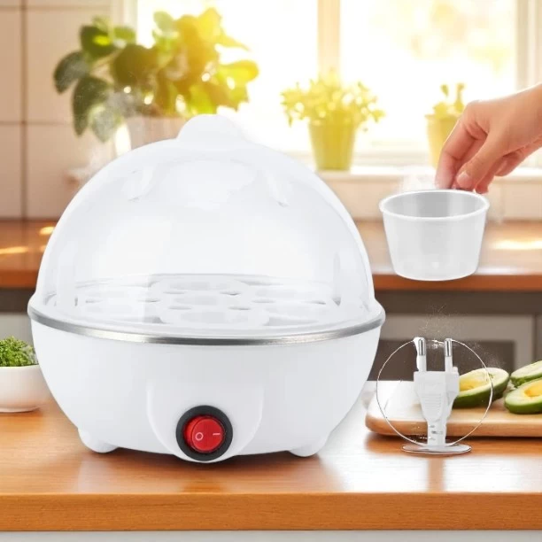 احصل على بيض مسلوق تمامًا في كل مرة مع جهاز طهي البيض الكهربائي الصغير والفعال. مناسب للبيض المسلوق الطري أو المتوسط أو القاسي، لوجبة فطور سريعة وخالية من الفوضى.