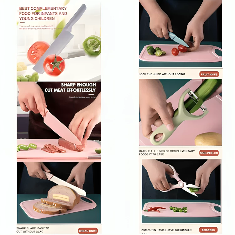 1️⃣ اختر السكين المناسب للوظيفة (سكين كبير للحوم، سكين صغير للفواكه، إلخ)