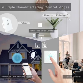 تتوافق مفاتيح الاضاءة مع تقنية الواي فاي WIFI 2.4GHZ للتحكم عن بعد لتتمكن من مراقبة اضاءة منزلك والتحكم بها من اي مكان بالعالم عن طريق تطبيق " SMART LIFE" او "TUYA" .