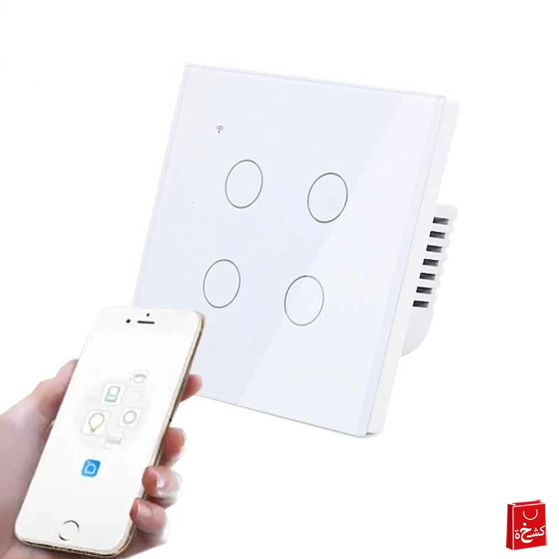 سويتش إضاءة ذكي (رباعي) يعمل باللمس للتحكم في تشغيل الكهرباء عن بعد من الموبايل او التابلت . (متوافق مع جوجل اليكسا وجوجل هوم)