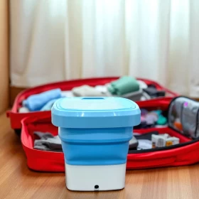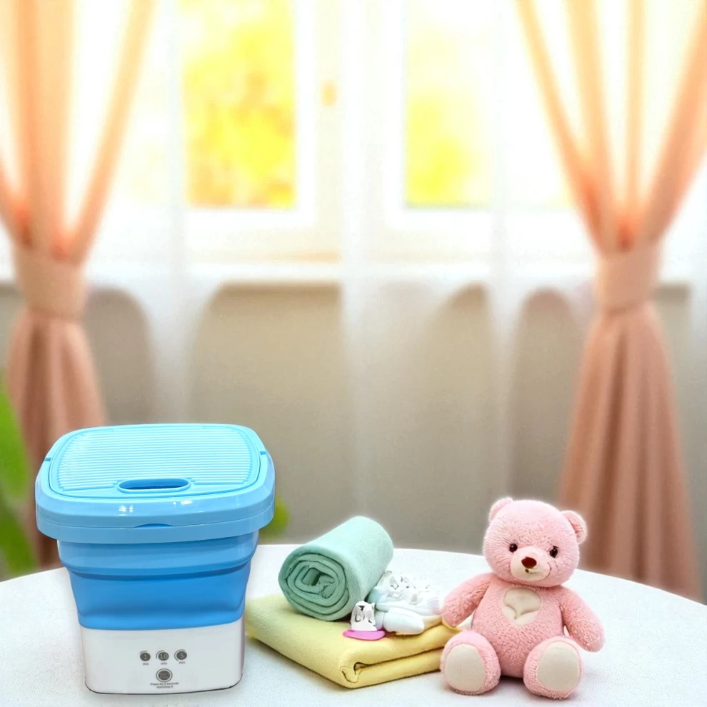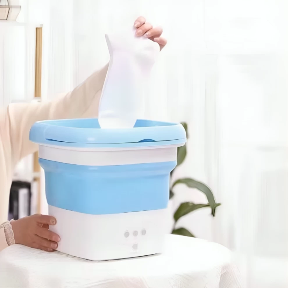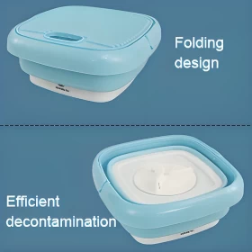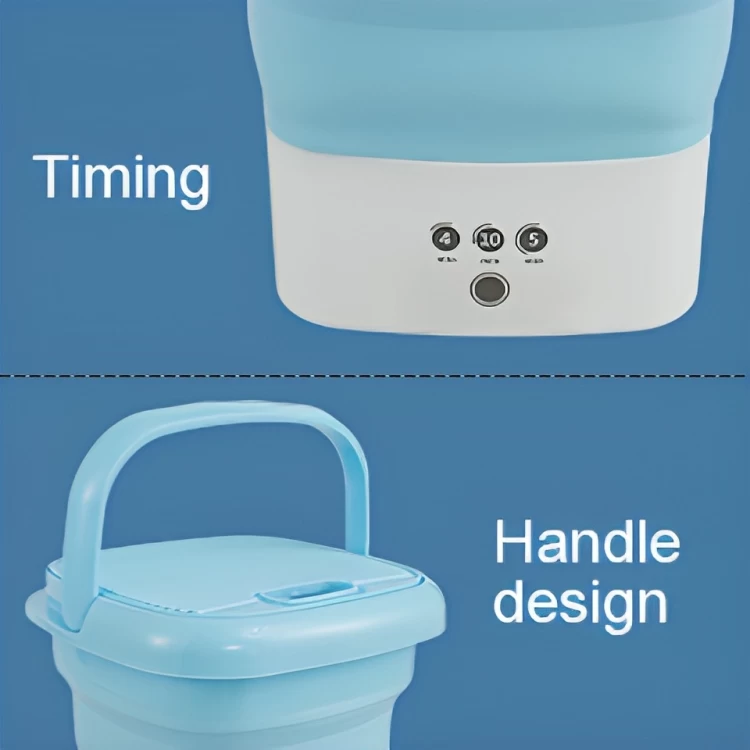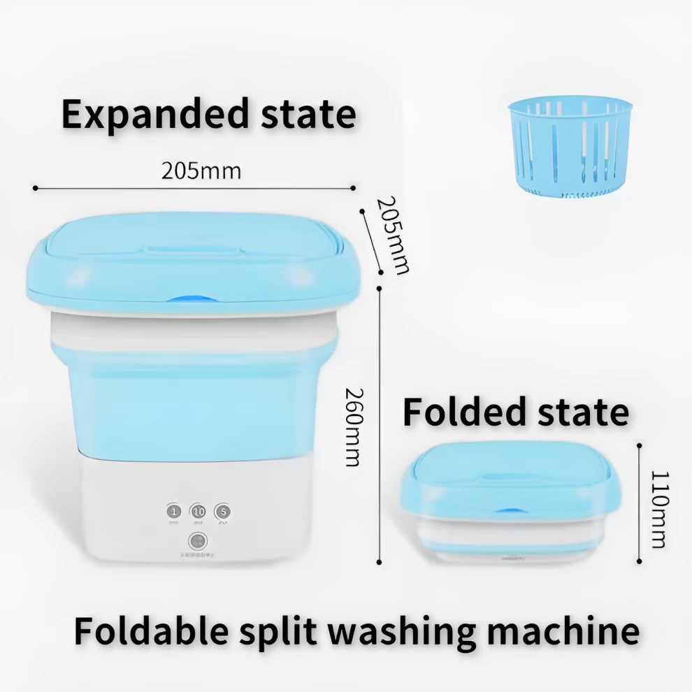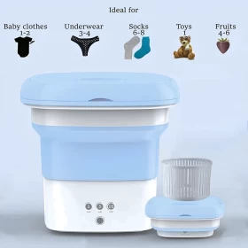 حافظ على ملابسك نظيفة ومنعشة في أي مكان مع الغسالة الصغيرة القابلة للطي! مصممة لتكون سهلة الحمل، فعالة، وسهلة الاستخدام، هذه الغسالة خفيفة الوزن وقابلة للطي، مما يجعلها مثالية للسفر، الشقق الصغيرة، السكن الطلابي، أو الغسيل السريع. مع نظام التحكم بزر واحد، أصبح الغسيل أسهل من أي وقت مضى!