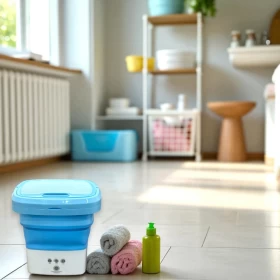 🌀 غسالة صغيرة قابلة للطي – مدمجة وعملية! ✨
