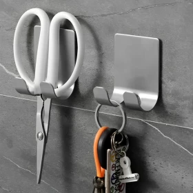 خطاف تعليق جداري ستيل لاصق بتصميمه الصغير الحجم الذي يجعله مثاليًا للاستخدام في المساحات الضيقة والمحدودة. يمكن تركيبه بسهولة عن طريق لاصق مدمج موجود في الجزء الخلفي من الخطاف، مما يسهل عملية تثبيته على الجدران والأبواب أو حتى داخل الدواليب والخزائن دون الحاجة الى الحفر واستخدام المسامير العادية .