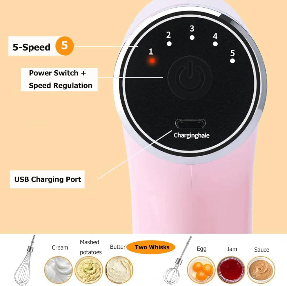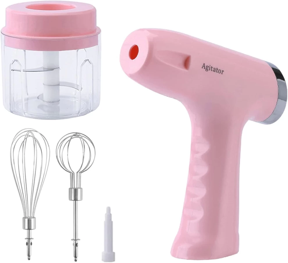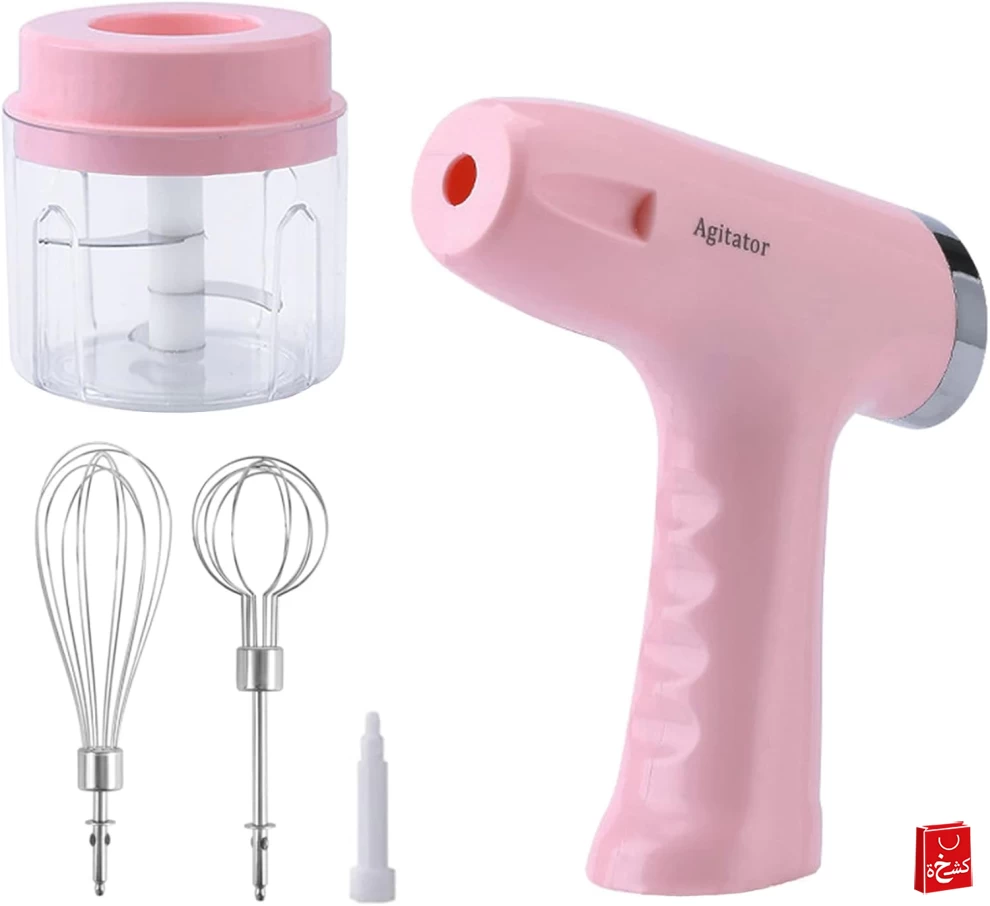 خلاط يدوي كهربائي صغير 3 في 1 – قابل للشحن USB وردي