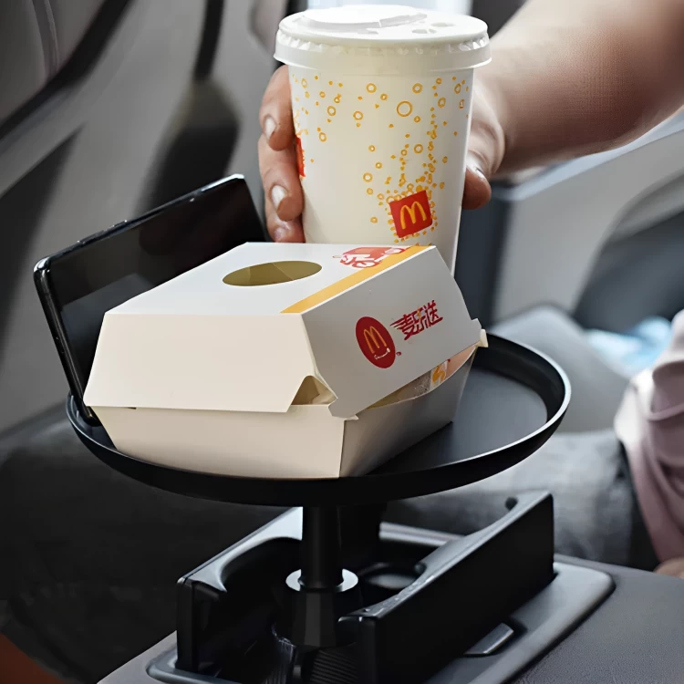 حوّل حامل الأكواب في سيارتك إلى طاولة صغيرة لتناول الطعام أو العمل أثناء التنقل. تصميم عملي يوفر لك مساحة إضافية داخل السيارة!