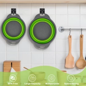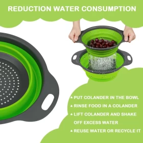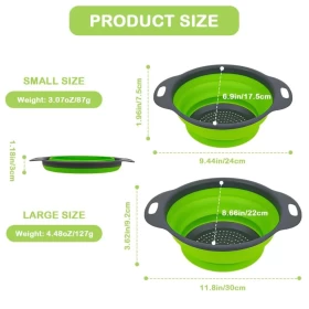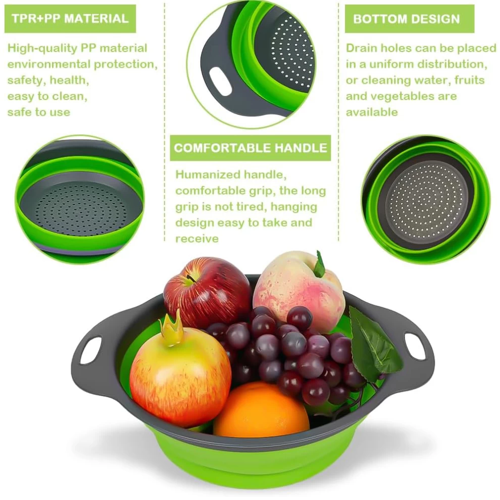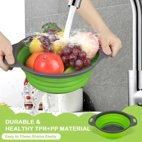 سهلة الاستخدام هذه المصفاة المستديرة القابلة للطي تستخدم لتصريف معظم الأطعمة مثل السباغيتي والمعكرونة والبطاطس والبروكلي والفاصوليا الخضراء والجزر والسبانخ وغيرها من الخضار ، لشطف أوراق السلطة والفواكه والخضروات الطازجة.