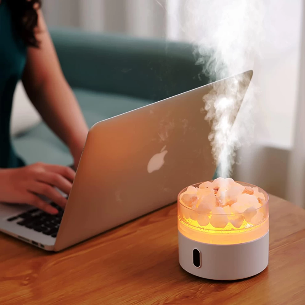 المرطب مع مصباح من حجر الملح ورذاذ بخار بارد ، ناشر العلاج العطري الأنيق يخلق رائحة وهدوء