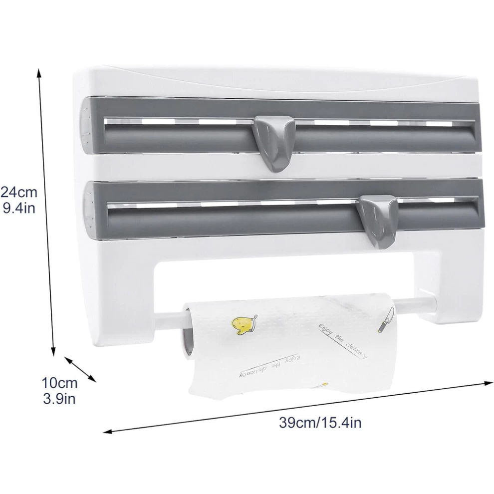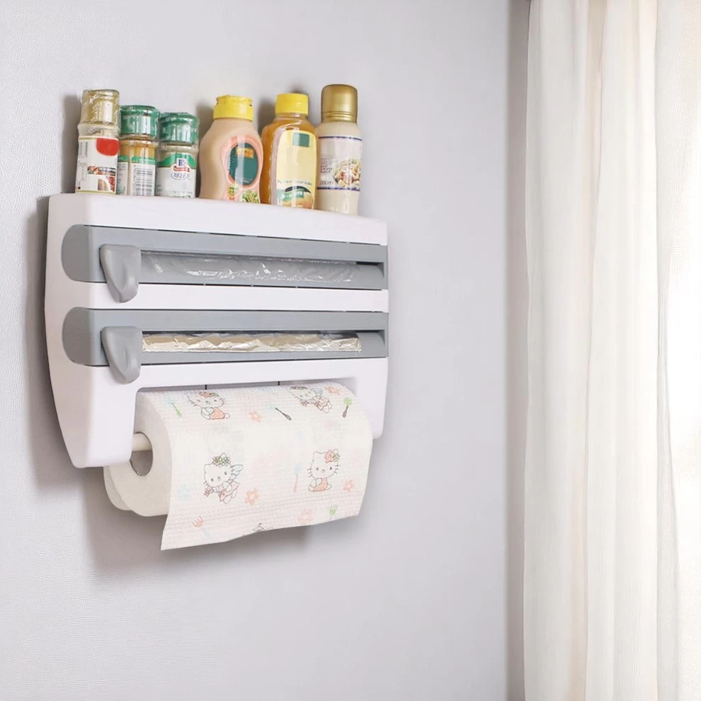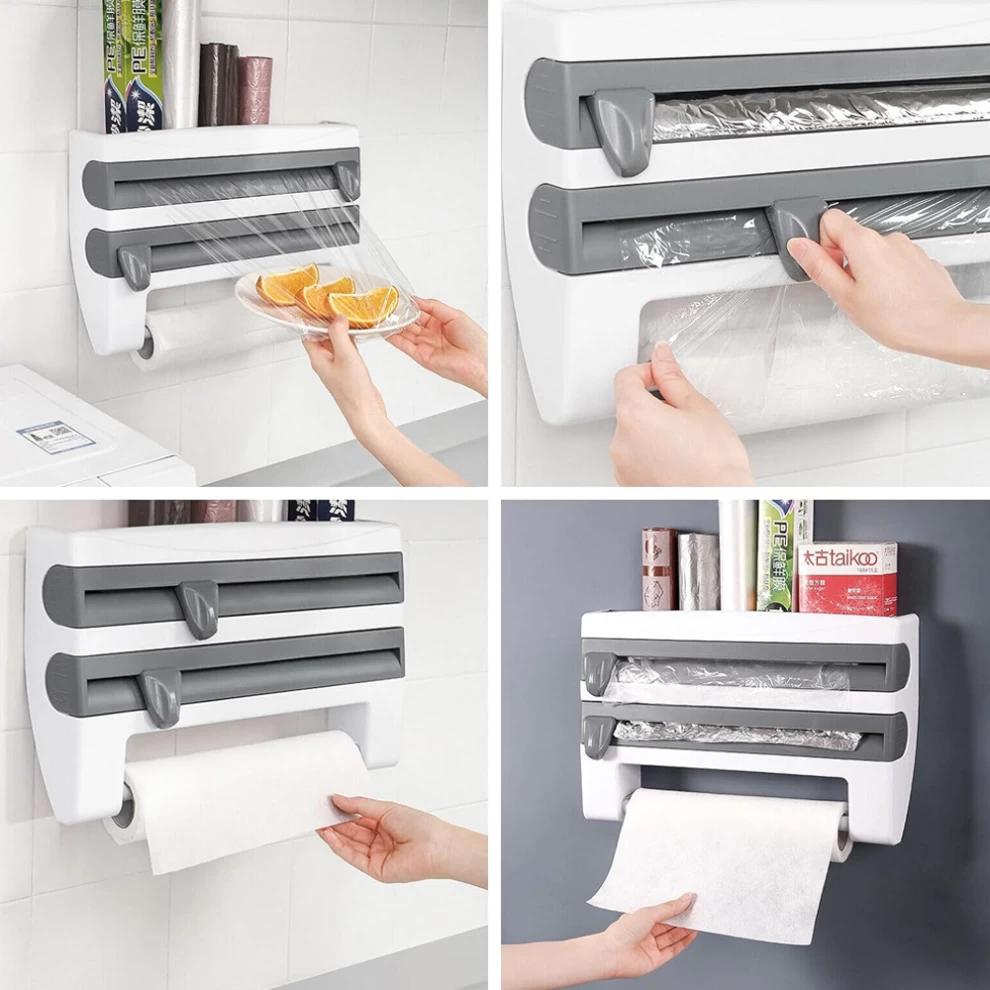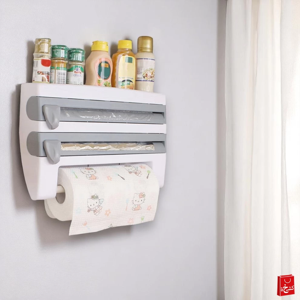 • 🧻 3 في 1 – موزع للمناديل الورقية، ورق الألمنيوم، ونايلون التغليف