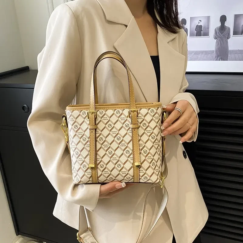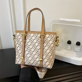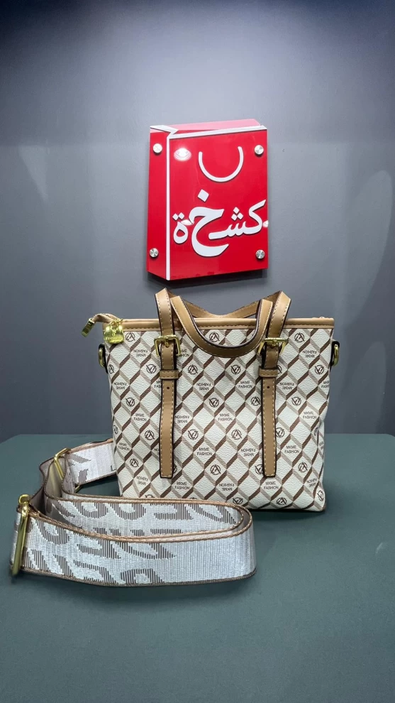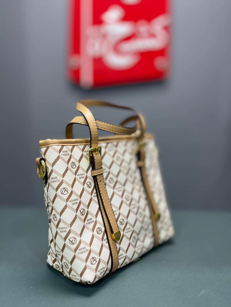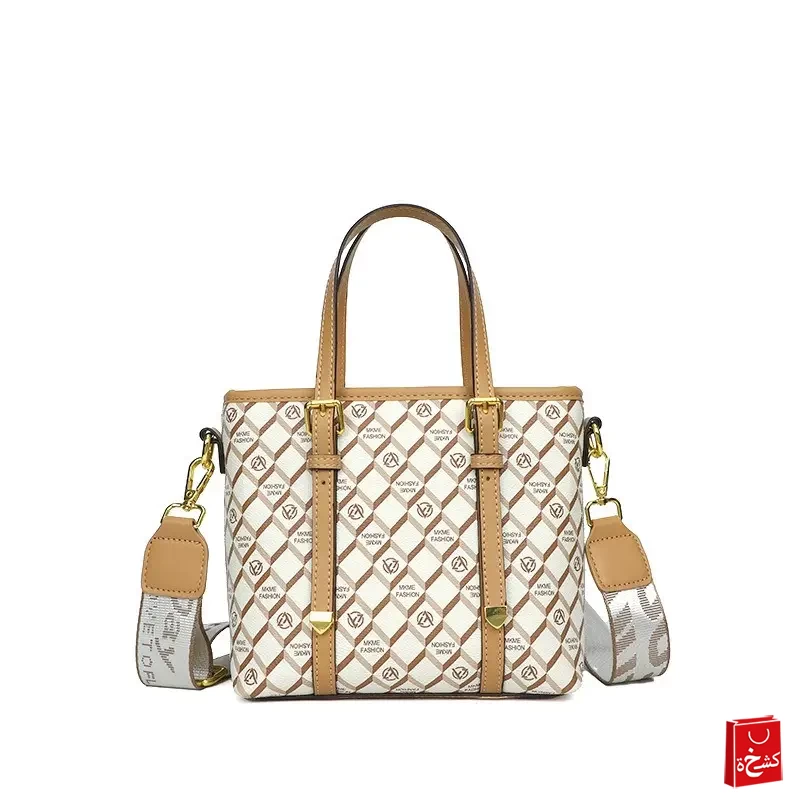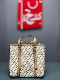 شنطة نسائية أنيقة الجلد بلون ابيض- ذهبي