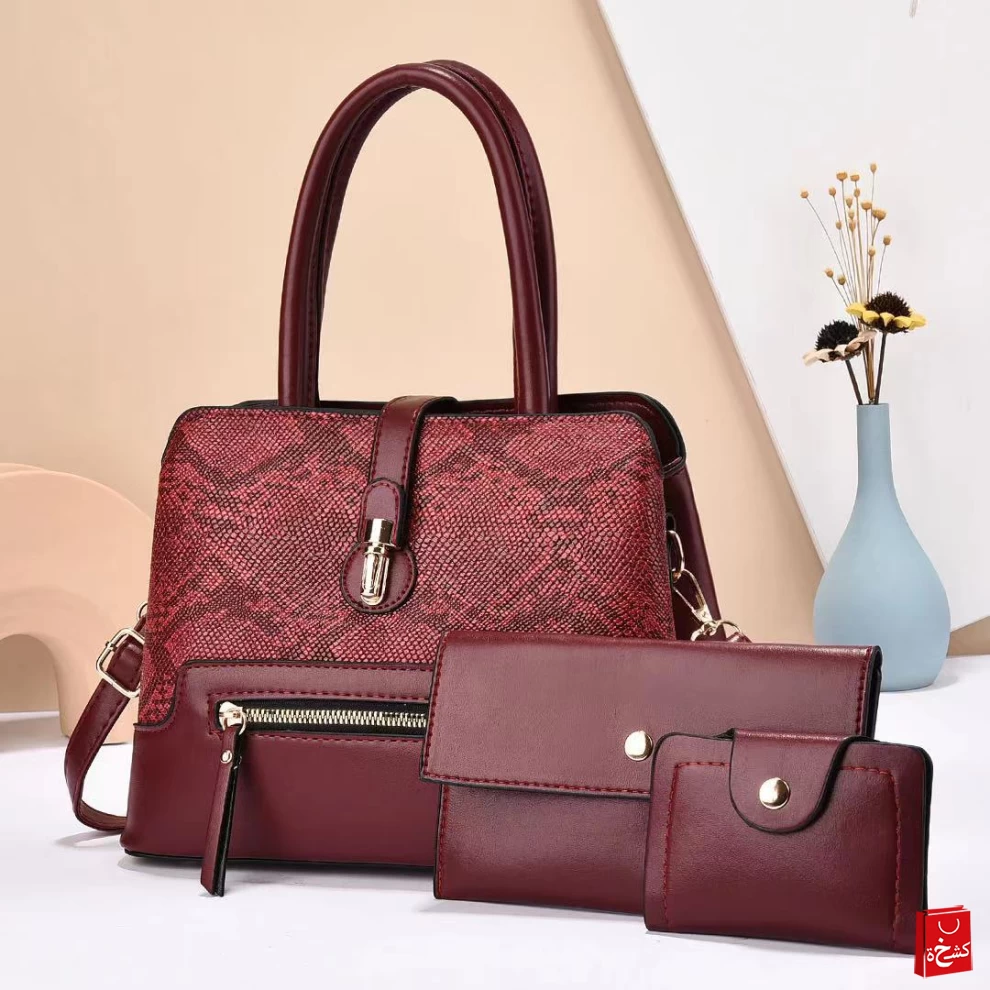 أفضل مجموعة شنط من 3 قطع : تحتوي المجموعة على شنطة كبيرة  + شنطة يد + محفظة.