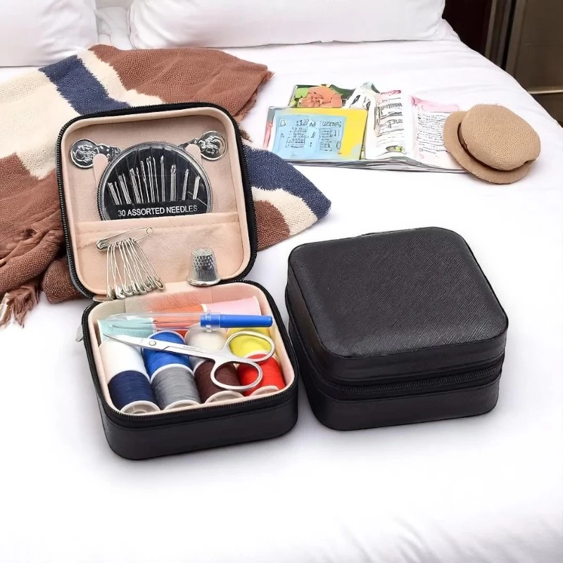 كل ما تحتاجه للإصلاحات السريعة أو لمسات الإبداع في الخياطة – في حقيبة صغيرة واحدة! عدة خياطة متكاملة تحتوي على أدوات أساسية مثل الإبر والخيوط والمقص وغيرها – مثالية للاستخدام المنزلي أو أثناء السفر.