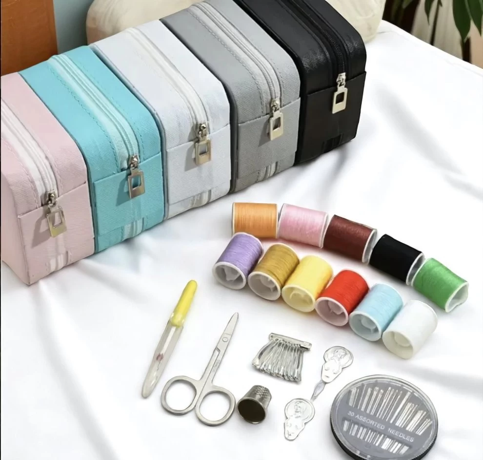 • ✅ 1x عدة خياطة متكاملة (حقيبة + أدوات وخيوط متنوعة)