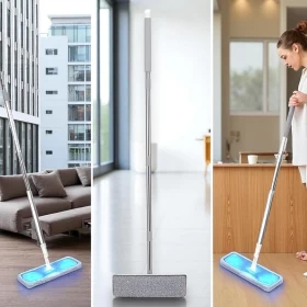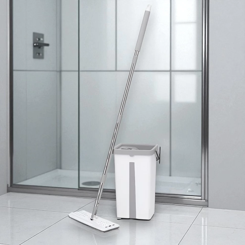 ممسحة احترافية مسطحة مع دلو عصري بعصر ذاتي تجعل أعمال التنظيف أسرع وأسهل وأكثر نظافة. مثالية للمنازل المزدحمة، المكاتب، ولكل من يريد أرضيات لامعة بدون انحناء أو فوضى أو أيدي مبللة.