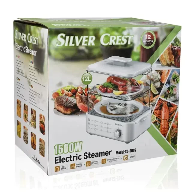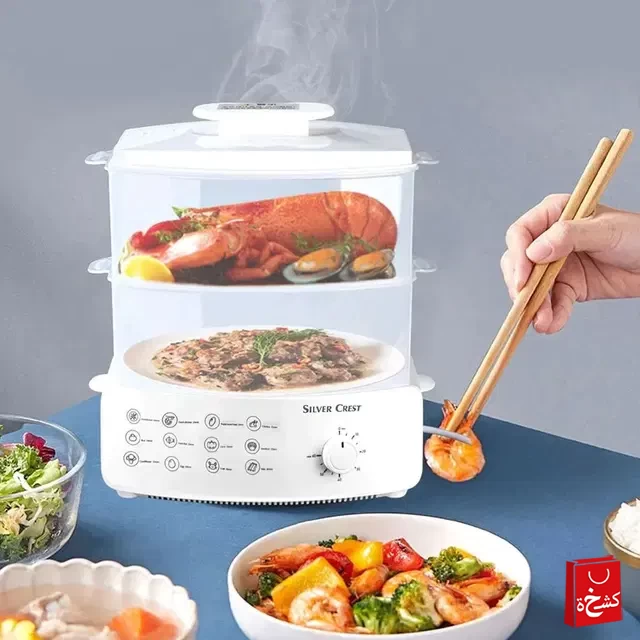 🍽️ قدر بخار كهربائي سيلفر كريست 12 لتر – 1500 واط – طبخ صحي وسريع