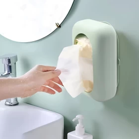 مزود بقاعدة لاصقة تلتصق بقوة على الأسطح الملساء، كما يتمتع بفتحة واسعة لتسهيل سحب المناديل دون تعليق.