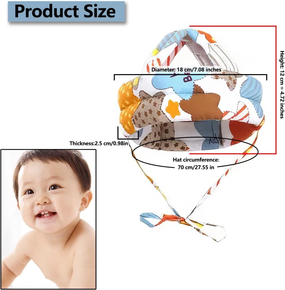 ✔️ حماية شاملة للرأس – تمتص الصدمات لتقليل خطر إصابات الرأس أثناء الزحف أو المشي.