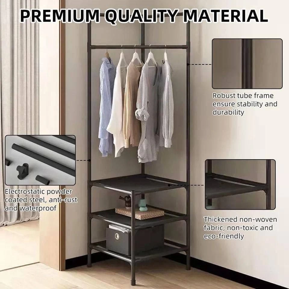 حافظ على ترتيب وتنظيم منزلك مع علاقة الملابس الزاوية متعددة الوظائف، المصممة خصيصًا لتوفير المساحة مع منحك أقصى سعة تخزين. مصنوعة من فولاذ كربوني عالي الجودة، مما يجعلها متينة، مقاومة للصدأ، وأنيقة، مما يجعلها مثالية لأي غرفة في المنزل أو المكتب. سواء كنت بحاجة إلى علاقة للملابس، رف للأحذية، أو منظم للقبعات، الأوشحة، والحقائب، فإن هذا المنتج يستغل زوايا الغرفة بكفاءة دون شغل مساحة إضافية!