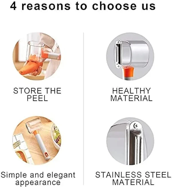• شفرة عريضة حادة للغاية تقلل من المقاومة وتلائم قشور الفاكهة بشكل مثالي، مما يجعل التقشير سهلاً.