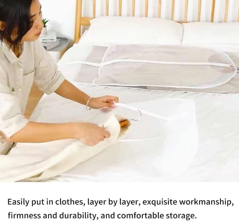 • تحمي ملابسك: حقائب حماية ممتازة للملابس في الخزانة لمنع الغبار وتلف الملابس الثمينة المخزنة في الخزانة أو المرآب أو العلية. مفيدة أيضًا للسفر من وإلى المنظفات الجافة أو خدمة الغسيل أو الخياطين.