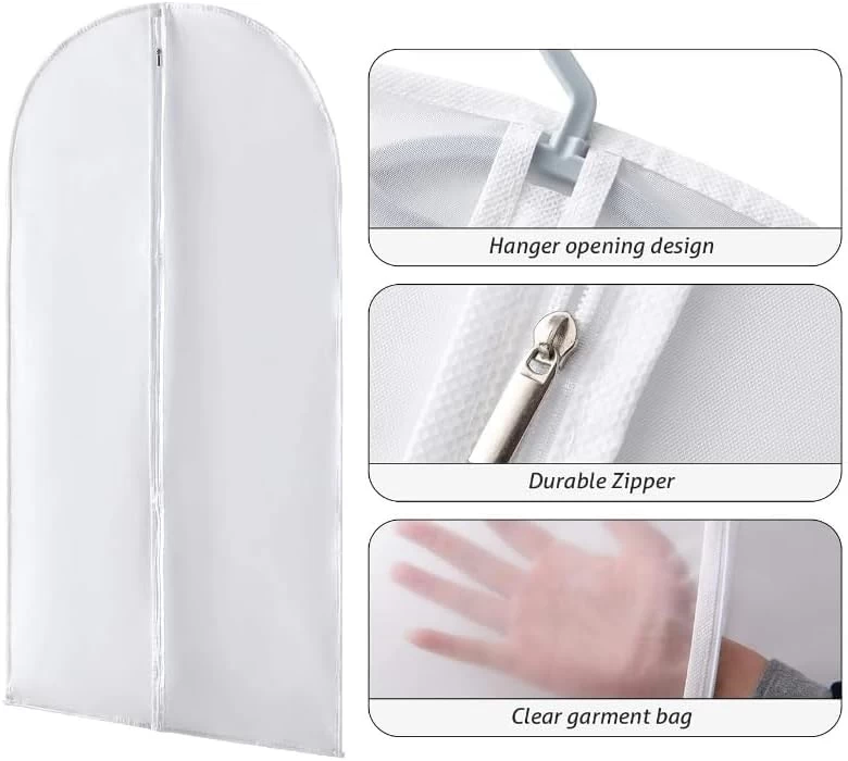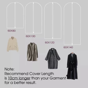 • تصميم سهل الاستخدام: بفضل الجزء الخارجي الشفاف للغاية، يمكنك بسهولة التعرف على الملابس الموجودة بالداخل، مما يجعلها مثالية لحماية الملابس في المنظفات الجافة أو متاجر التجزئة أو الخياطين.