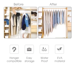 • حقيبة ملابس شفافة وخفيفة الوزن: قم بتخزين الملابس بشكل مريح باستخدام حقيبة الغطاء الواقية هذه التي تحافظ على ملابسك خالية من الغبار والأوساخ والحشرات. إنها خفيفة الوزن وسهلة التعليق تمامًا ومريحة للنقل.