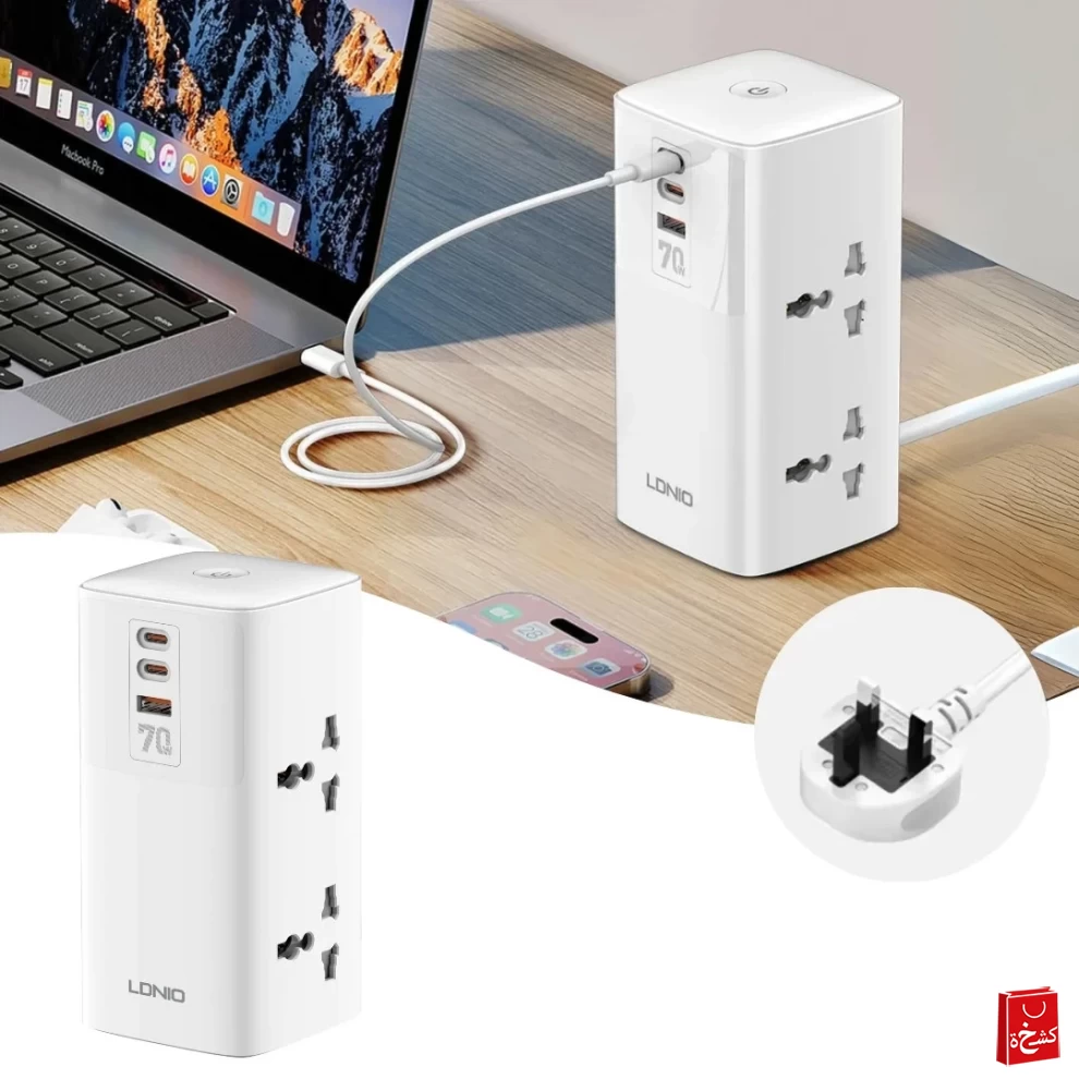 كما يحتوي على 4 منافذ UK، مما يضمن شحن جميع أجهزتك بسرعة وكفاءة