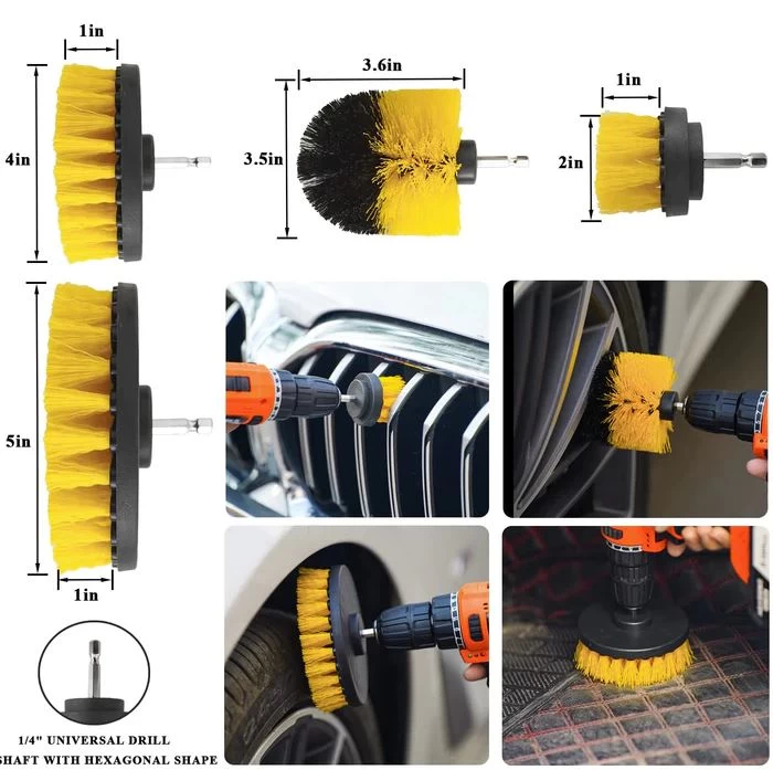 فرشاة كهربائية متعددة الاستخدامات – 4 مقاسات من الفُرَش النايلون متوسطة الصلابة (2.5”، 3.5”، 4”، 5”) لتنظيف الإطارات والسجاد وحتى الحمام والمطبخ بدون خدوش.