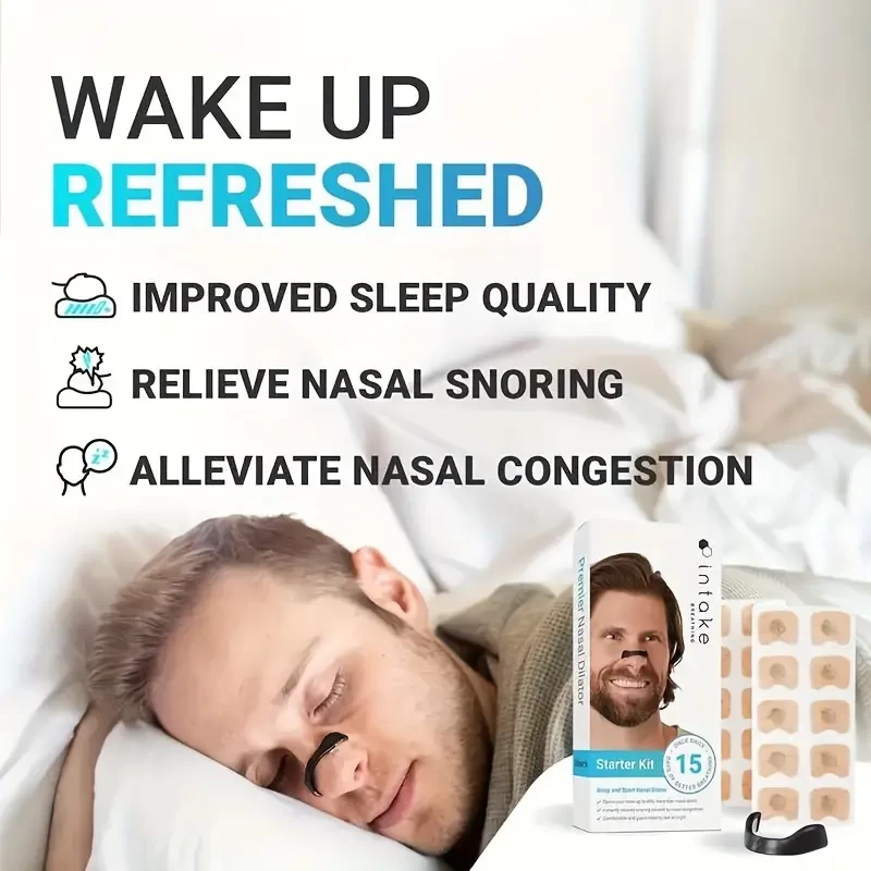 استمتع بتنفس أسهل وأعمق مع طقم شرائط الأنف Intake – الحل الثوري الموصى به من قِبل الأطباء لتخفيف الشخير، وعلاج انسداد الأنف، وتحسين الأداء البدني. يتضمن هذا الطقم 15 لاصقة أنف مبتكرة بالإضافة إلى رباط مغناطيسي خارجي يعملان معًا على توسيع ممرات الأنف بطريقة طبيعية ومريحة.
