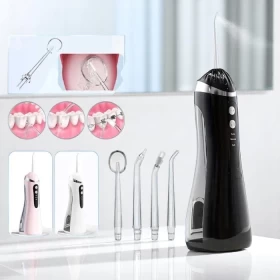 جهاز تنظيف الأسنان بالماء اللاسلكي بسعة 200 مل مع 4 رؤوس قابلة للاستبدال