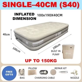 سرير هوائي قابل للنفخ بمضخة مدمجة مقاس فردي -200x150x40سم