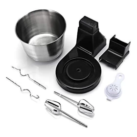 ملحقات متينة من الفولاذ المقاوم للصدأ – يشمل 2 مضارب و 2 خطافات للعجين لاستخدامات متعددة.