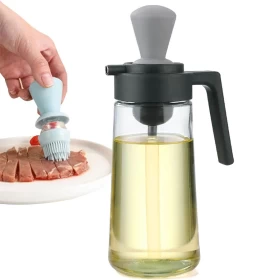 زجاجة زيت مع فرشاة سيليكون 2 في 1 – موزع زيت للطهي والخبز والشوي