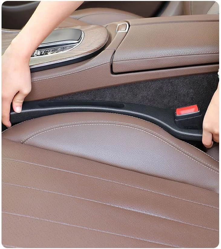 1️⃣ أدخل حشوة فجوة مقعد السيارة في الفجوة بين مقعدك ووحدة التحكم المركزية.