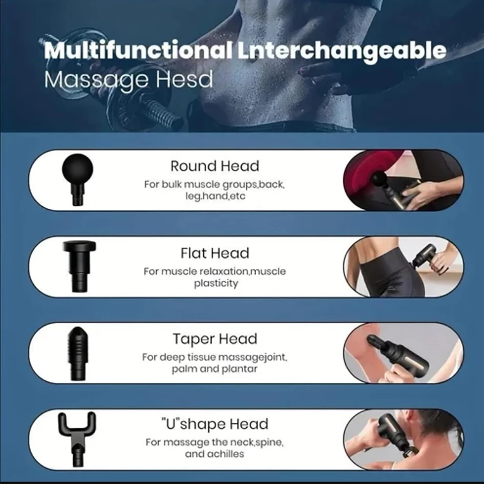 أعيدوا شحن طاقتكم مع مسدس تدليك الأنسجة العميقة بالقرع، المصمم لاسترخاء كامل الجسم واستعادة عافية العضلات 💪🔋. مع رؤوس تدليك متعددة وسرعات قابلة للتعديل، يستهدف هذا الجهاز المحمول طبقات العضلات العميقة لتخفيف التعب والتوتر والألم - مثالي للرياضيين، ورواد الصالات الرياضية، أو أي شخص يحتاج إلى تدليك مريح.
