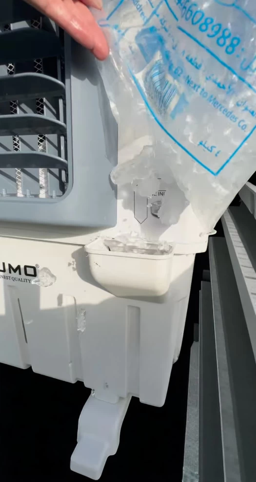 1️⃣ عبّ الخزان بماء نظيف أو أضف ثلج للتبريد الإضافي