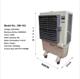 خلك دايمًا مرتاح مع مبرد الهواء سمو بسعة 90 لتر – الحين مع ريموت كنترول شامل! مصمم لتبريد المساحات الواسعة بكفاءة، ويتميز بخزان ضخم، تدفق هواء قوي، 3 سرعات للمروحة، ونظام توزيع هواء تلقائي. سواء كنت في البيت، المكتب، أو تحت الخيمة، هذا المبرد يعطيك راحة وانتعاش بدون إزعاج وبتوفير في الكهرباء.