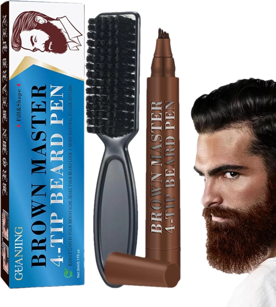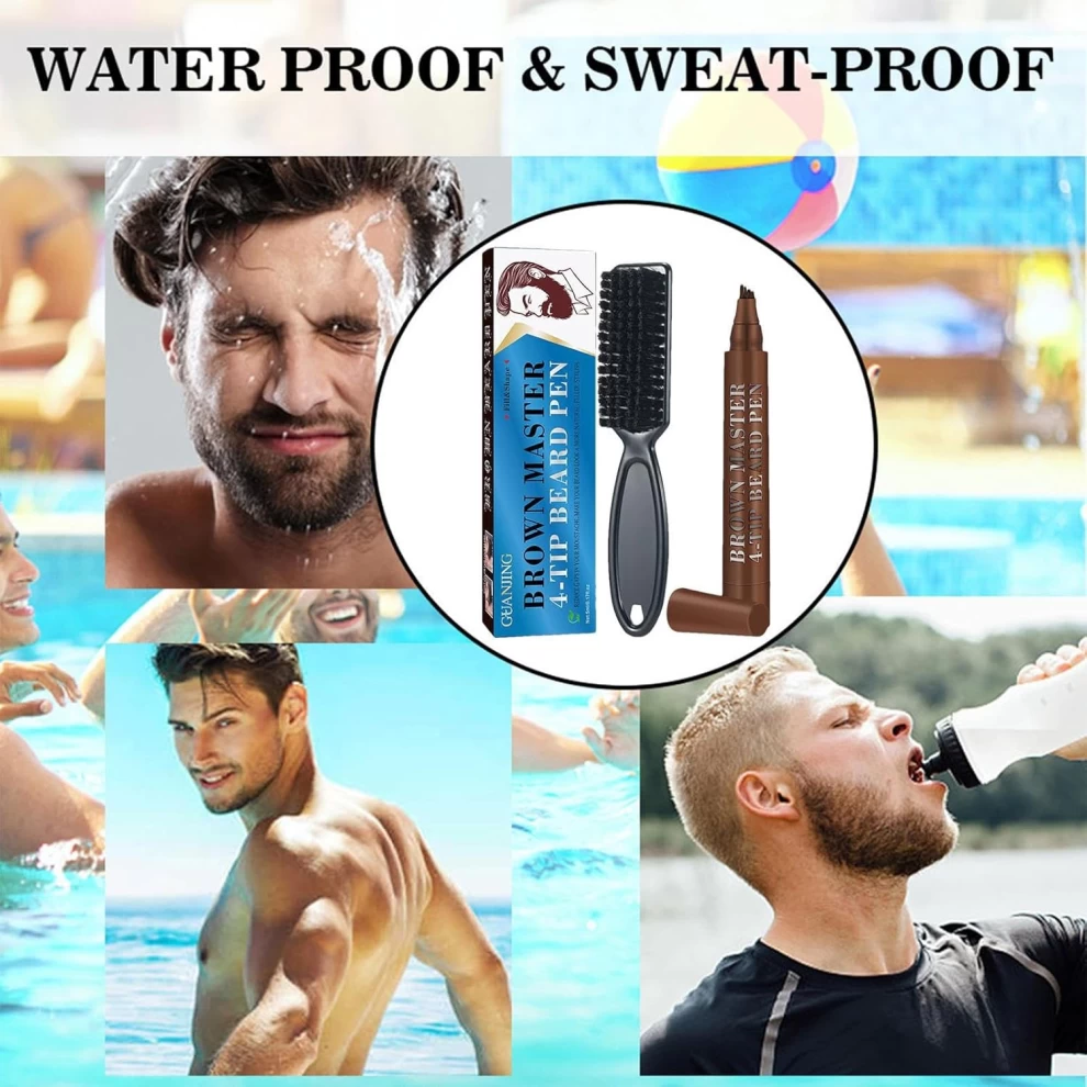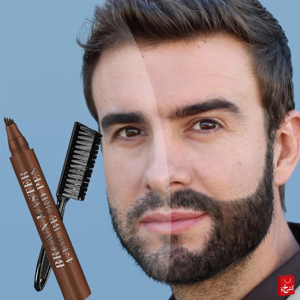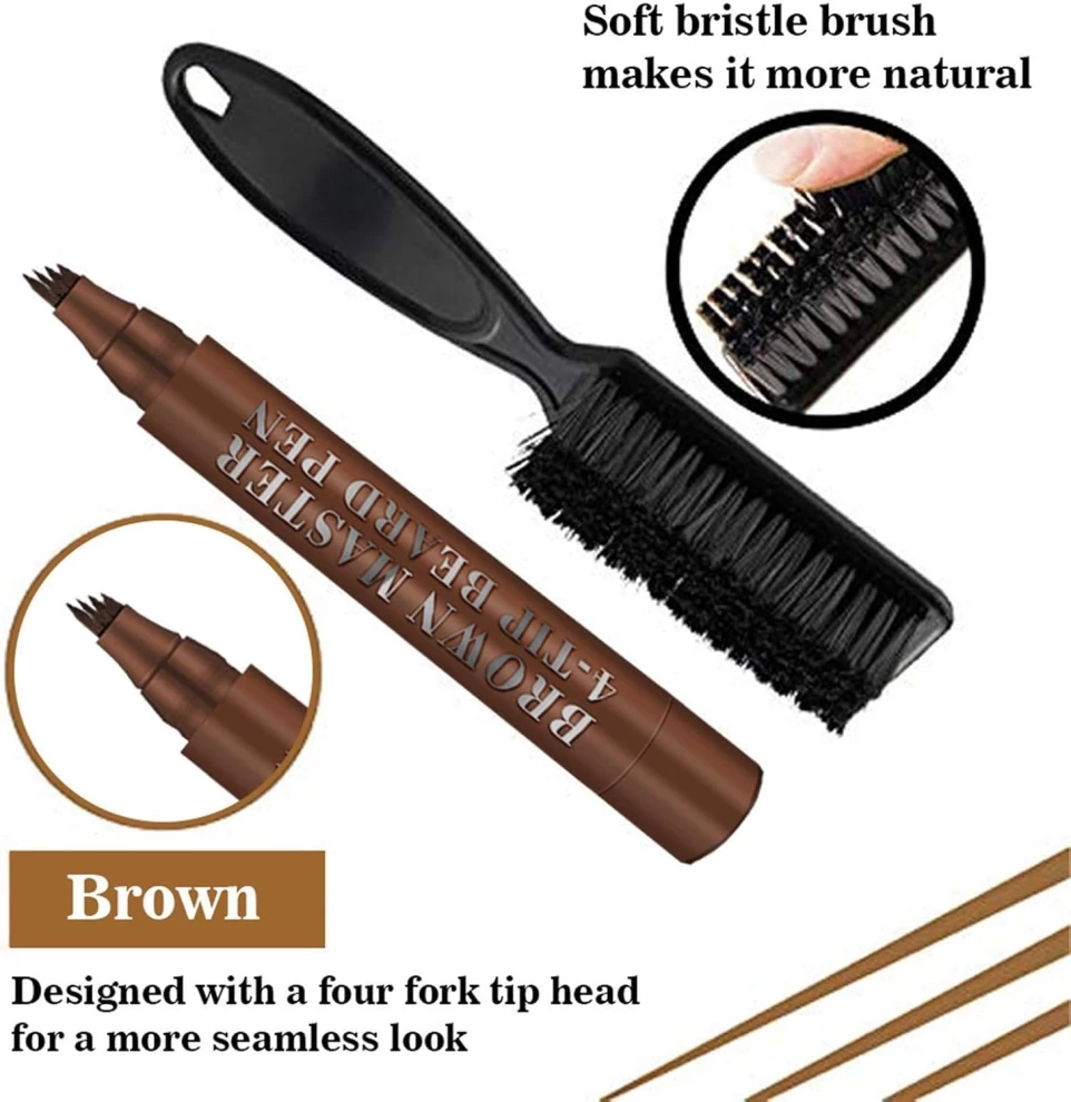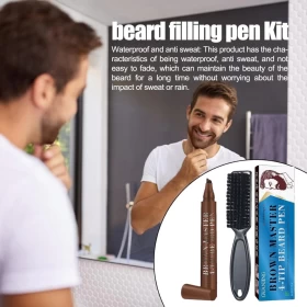 ✒️ قلم تعبئة اللحية المقاوم للماء مع فرشاة – بني