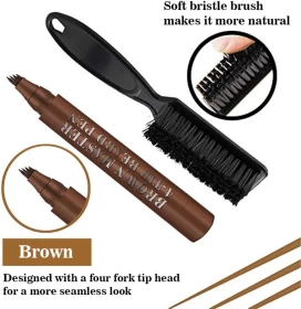 احصل على لحية أكثر كثافة وحدود دقيقة خلال ثوانٍ! قلم تحديد اللحية المقاوم للماء يساعد في تعبئة الفراغات ويمنحك مظهر طبيعي بلون بني، مع فرشاة مدمجة للدمج المثالي.