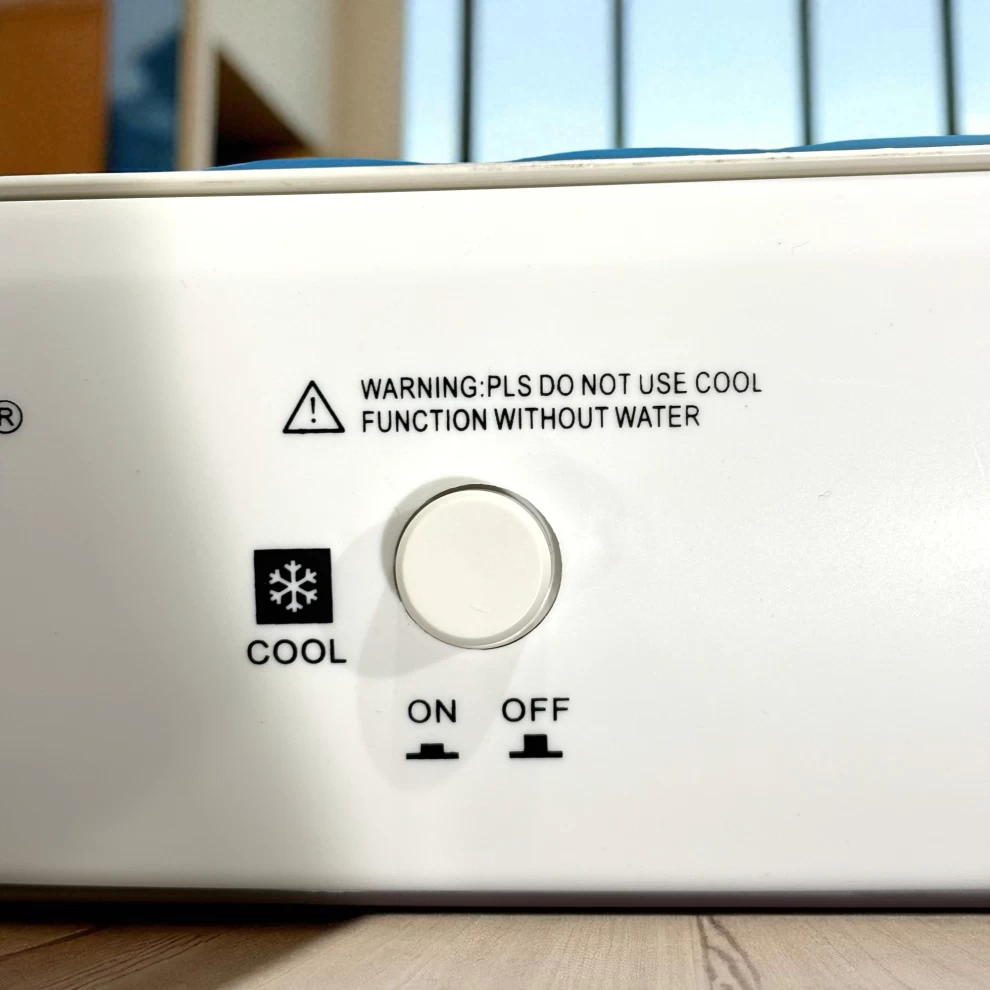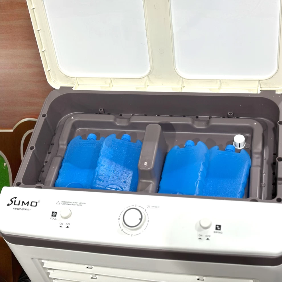 1️⃣ املأ خزان الماء بماء نظيف (يمكن إضافة الثلج لبرودة أقوى)