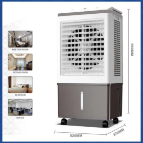 استمتع بالبرودة بسهولة مع المكيف الصحراوي المحمول المصمم لتبريد قوي مع استهلاك منخفض للطاقة. بفضل خزان الماء بسعة 50 لتر وتدفق هواء قوي يصل إلى 3500 م³/س، فهو مثالي للحفاظ على برودة المنازل، المكاتب، المساجد، والمساحات الخارجية. سهل النقل، آمن، وفعّال – الخيار المثالي لمناخ الكويت والخليج.