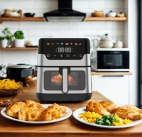 • 🍗 متعددة الوظائف – قلي، شوي، خبز، إعادة تسخين