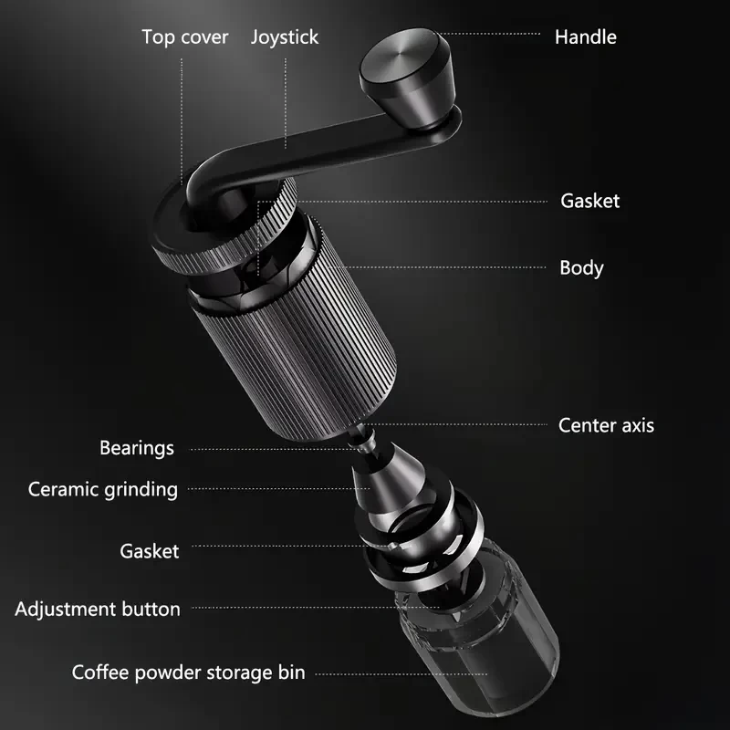 استمتع بطحن القهوة الطازجة أينما كنت! تصميم يدوي بدون كهرباء، مع نواة سيراميكية قابلة للتعديل لطحن دقيق أو خشن حسب رغبتك – مثالية للمنزل، المكتب، السفر والتخييم.