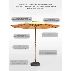 استمتع بالظل والراحة مع المظلة الخارجية المقاومة للرياح المزودة بقاعدة قوية. مثالية للمساحات الخارجية مثل الحدائق، الشرفات، المقاهي، وحواف المسابح، حيث توفر حماية من أشعة الشمس مع تصميم أنيق وعصري. تتميز بثبات عالي، قماش مقاوم للماء، وهيكل متين يجعلها الخيار المثالي لأيام الصيف المشمسة.