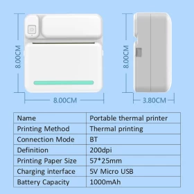 استمتع بتجربة الطباعة الفورية مع الطابعة الحرارية المحمولة صغيرة الحجم! 📸 بتصميمها المدمج وخفة وزنها، يمكنك حملها في أي مكان، كما تدعم الاتصال بالبلوتوث لطباعة الصور، الملاحظات، الملصقات، والفواتير بسرعة وسهولة.
