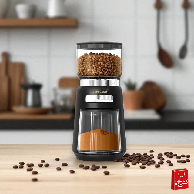 • 🎛️ إعدادات طحن متعددة – من ناعم للإسبريسو إلى خشن للفرنش برس