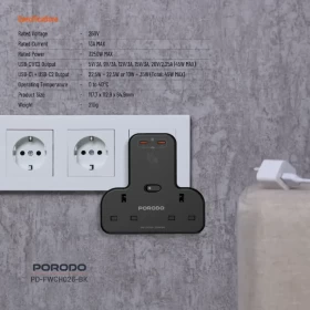 طور تجربة الشحن والطاقة مع مشترك بورودو متعدد المنافذ. مصمم لتوصيل وشحن عدة أجهزة في وقت واحد بشكل آمن وفعال، مما يجعله مثاليًا للاستخدام في المنزل، المكتب، والسفر. تصميم أنيق ومدمج باللون الأسود ليضيف لمسة عصرية لأي مكان.