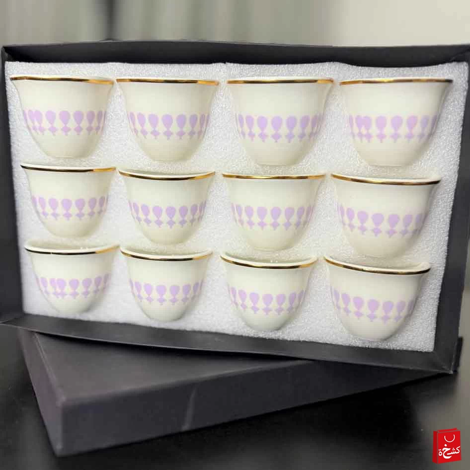 • 12 فنجان قهوة عربية من الخزف الفاخر