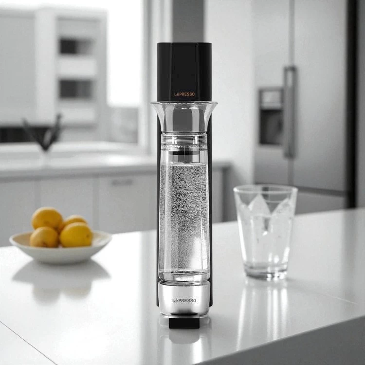 آلة المياه الغازية من LePresso بزر تحرير الضغط – أسود