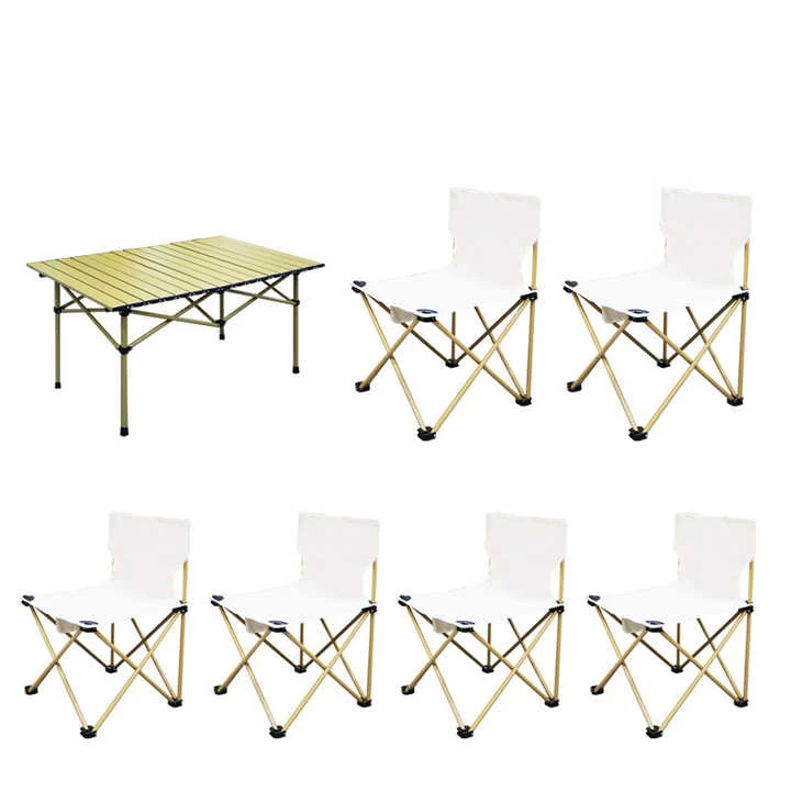 • 🏕️ طقم كامل 7 قطع – 1 طاولة + 6 كراسي قابلة للطي